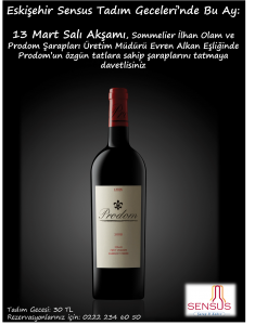 Eskişehir Sensus’ta Prodom Şarapları Tadım Gecesi’nde Buluşuyoruz