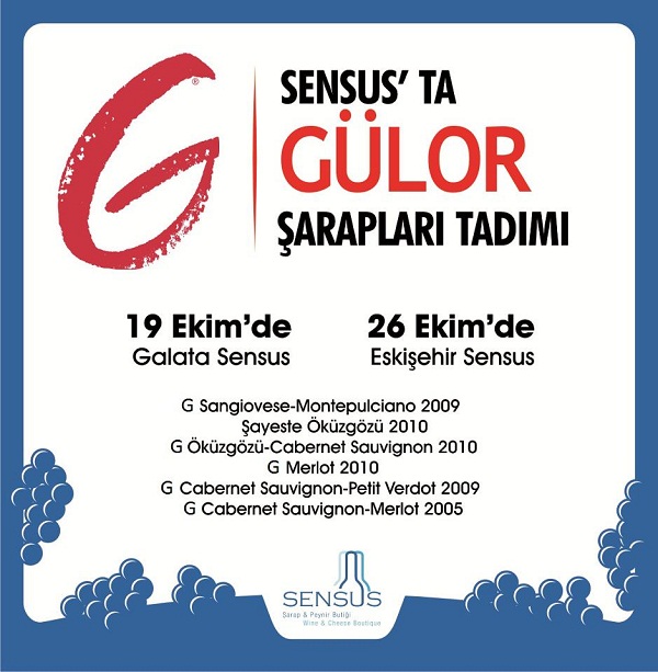 Gülor Şarapları Tadımı 26 Ekim’de Sensus Eskişehir’de…..